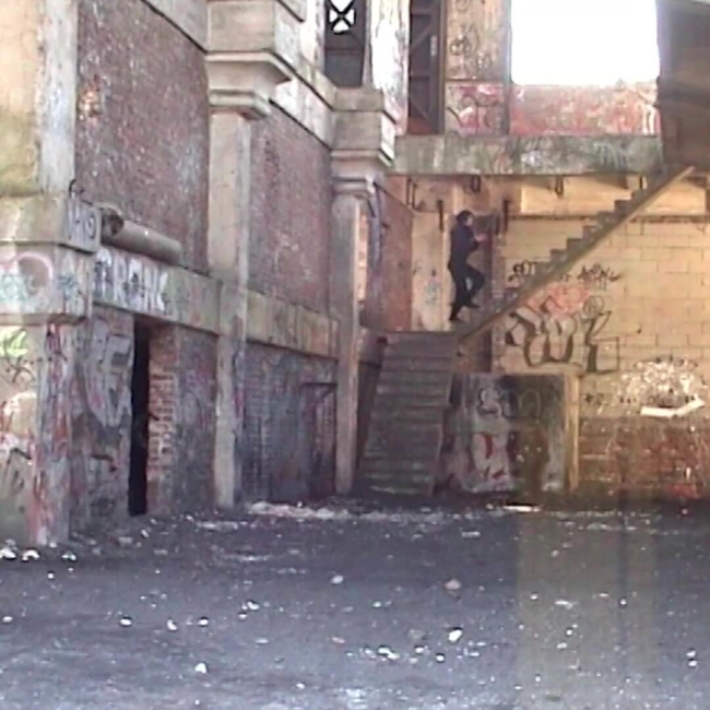 05'29Vidéo réalisée dans une friche à Sedan pour l’exposition « Transtopie ». S’approprier l’espace, circuler en cherchant sans fin à abandonner un morceau de nature dans un lieu où la nature elle-même reprend ses droits.